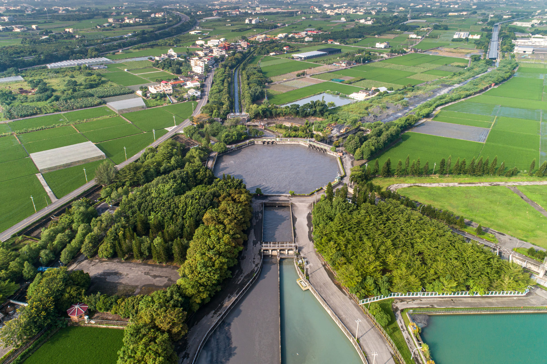 林內分水工位於林內鄉的農田水利文物陳列館園區內,為全台首座、亞洲首創的八角形分水工,進水及取水渠道共有七條,採「二進五出」,由濁水溪進水,經南岸聯絡渠道及二號進水口導水引入分水工(二進),再由分水工配水至濁幹線、濁水發電廠、麻園支線、烏塗支線及六輕工業區等使用(五出),但因多達5處取水口,水流易互相干擾,取水不易,故採直徑 100 公尺正八角形配置,正交流入期減少渦流干擾並兼具吞吐調節水量功能,總蓄水量為 45,638 噸,是一極具參訪價值的水利設施。